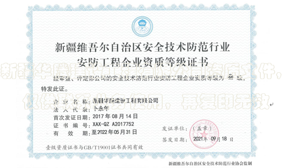 新疆維吾爾自治區(qū)計算機信息系統(tǒng)集成企業(yè)證書